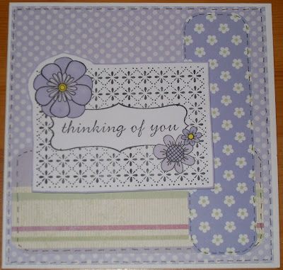 I followed the lovely sketch from Stamp Something. I cut round the image from Hero Arts, coloured the flowers and edged it all with Promarkers. I popped the "thinking of you up on sticky pads to give a bit of dimension. I've added lots of faux stitching for the Quixotic Paperie challenge. It is a "thinking of you" card to fit the Simon Says Stamp challenge. I have used my new "thinking of you" stamp for the Creative Inspirations Wednesday challenge.